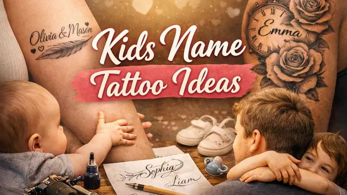 Classic script tattoos featuring your child’s name in elegant handwriting remain one of the most popular child name tattoo ideas. You can choose a delicate, feminine font for a soft and graceful look, or go with bold lettering.